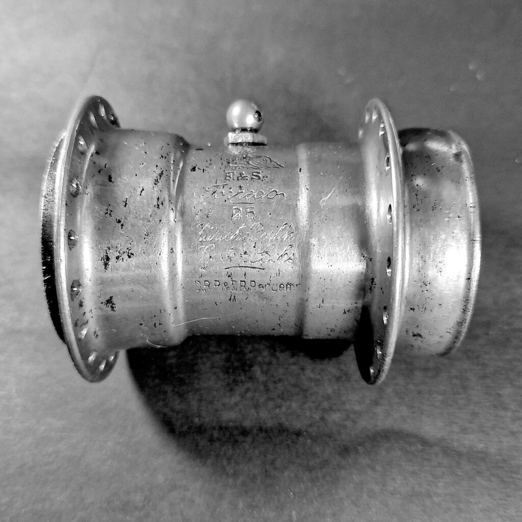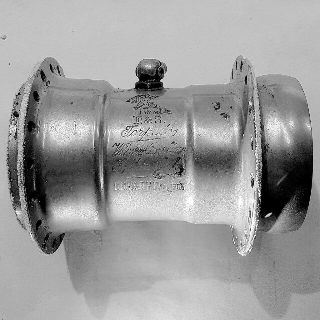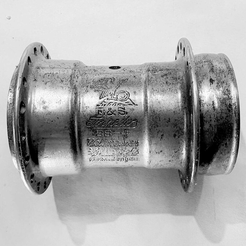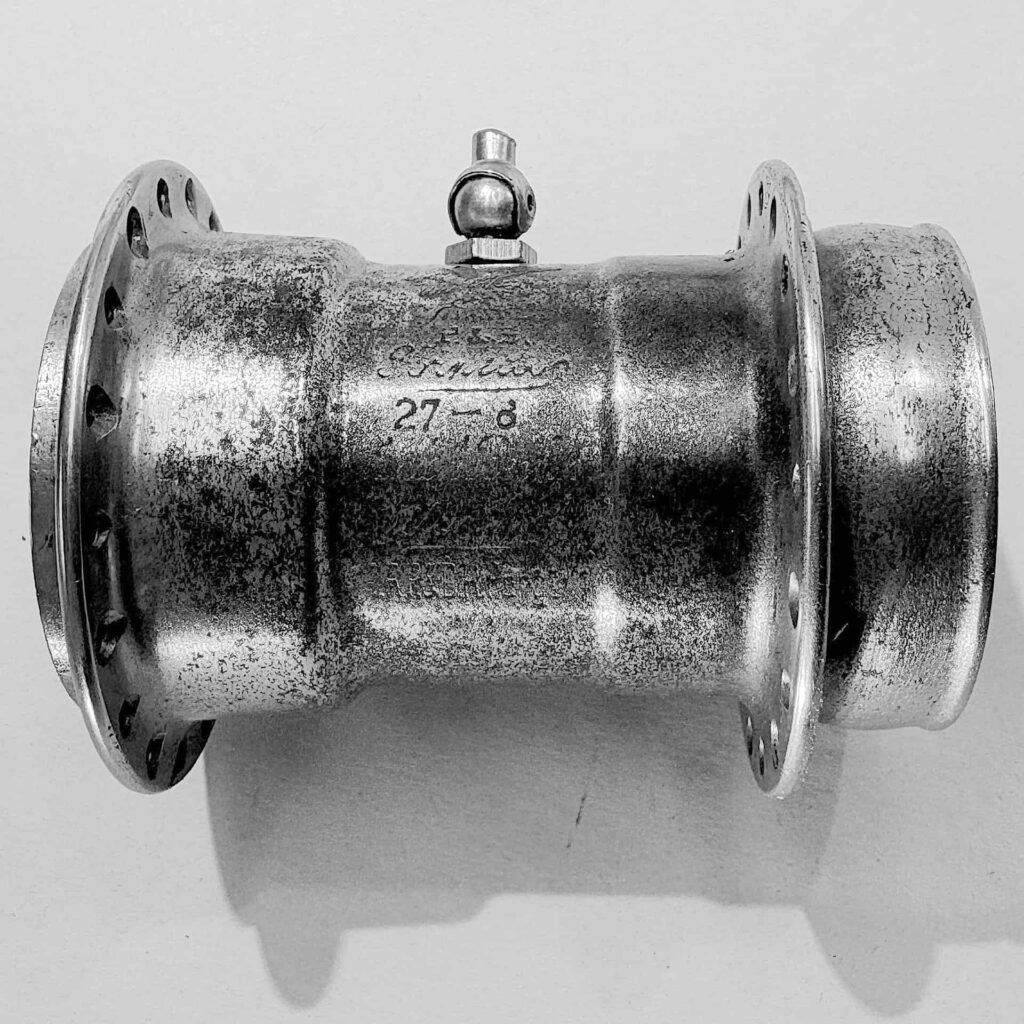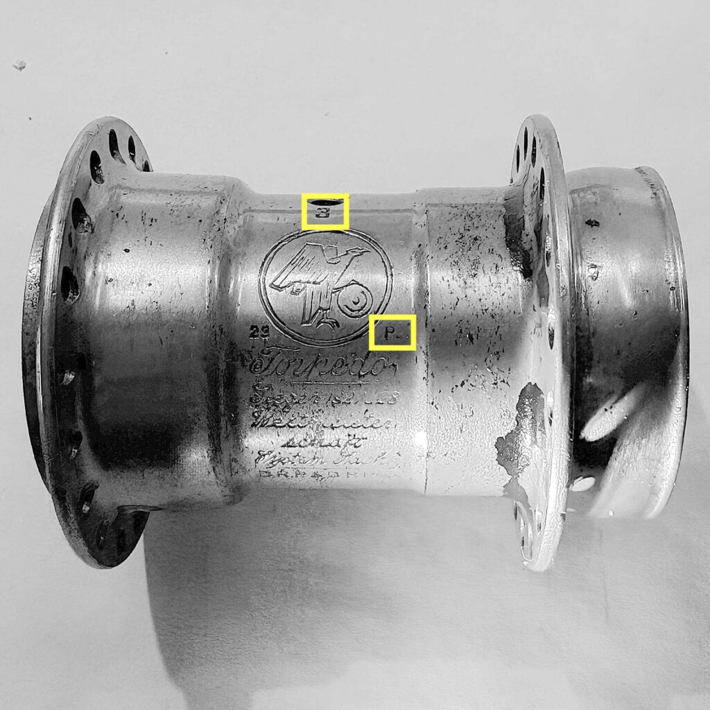 Ebenfalls unklar ist die Bedeutung der bei beiden Stempelungen verwendeten, die unterhalb des Ölers eingeschlagen wurden. Hingegen ist die an gleicher Stelle auch bei anderen Naben häufiger anzutreffende Zahl, z.B. „3“, nur die Angabe des Durchmessers der Speichenlochbohrung in mm.
