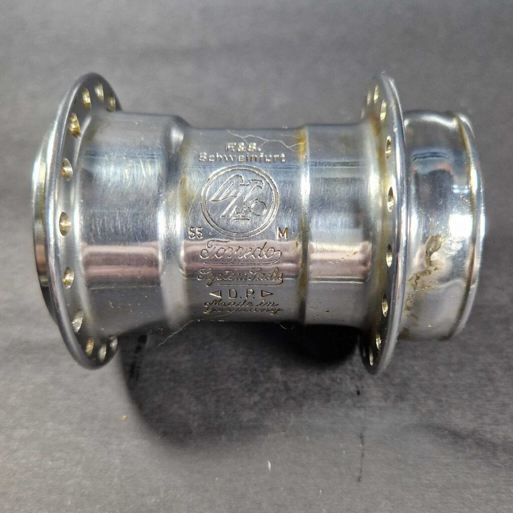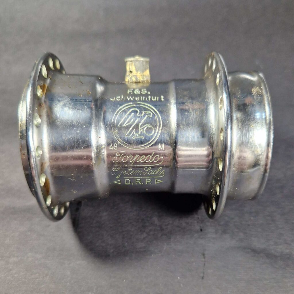 Ab 1940 sah F&S dann kriegsbedingt „schwarz“. Um kriegswichtige Rohstoffe für die Rüstung zu sparen, stellte man die Produktion grösstenteils um. Die Naben wurden nun vielfach schwarz lackiert ausgeliefert. Die Beschriftung blieb erst einmal unverändert.