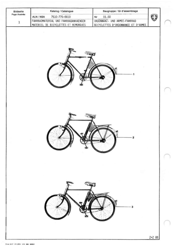 - Unterschiede zwischen Armee-Fahrräder (keine einheitliche Nummerierung, diverse Modelle) und Ordonnanzrädern (einheitliches Modell).
