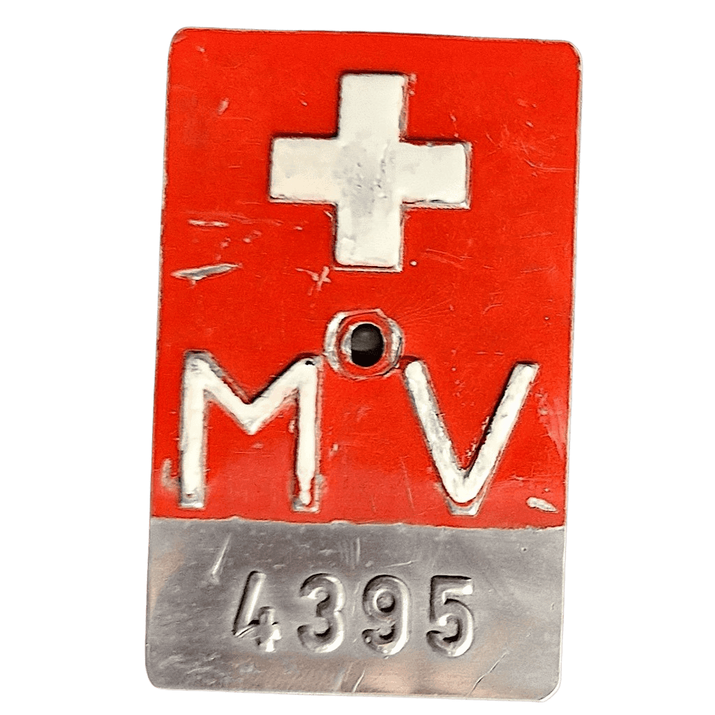 Sammlung: Schweizerisches Archiv für das Ordonnanzfahrrad, René Hauser. Bislang einzig bekanntes Exemplar einer alten M.V. Nummmer.