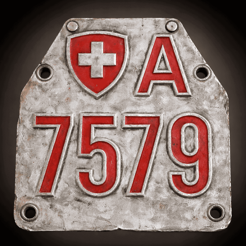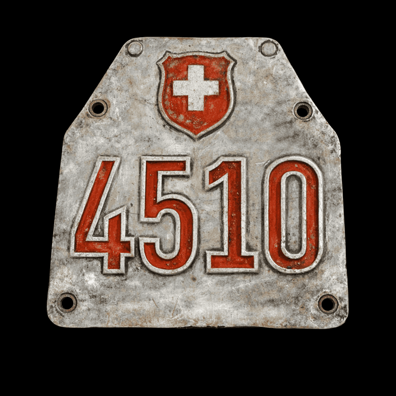 1944 wurde zur Erleichterung der Registrierung der Armee-Fahrräder (nicht Ordonnanzräder) dieses Schild geschaffen und galt als individuelle Registriernummer in den Zeughäusern.