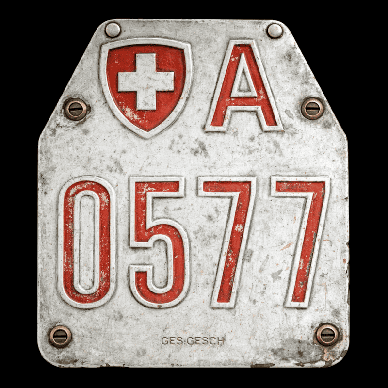 1932 – 1941 = Schweizerkreuz + A + 4 Zahlen (= Rahmennummern 10000 – 19999)