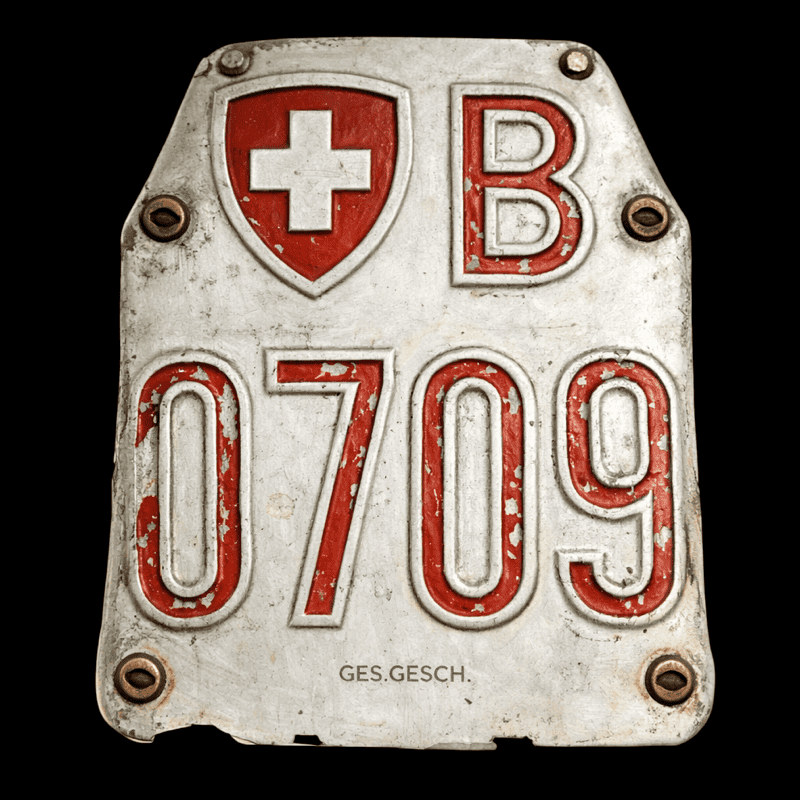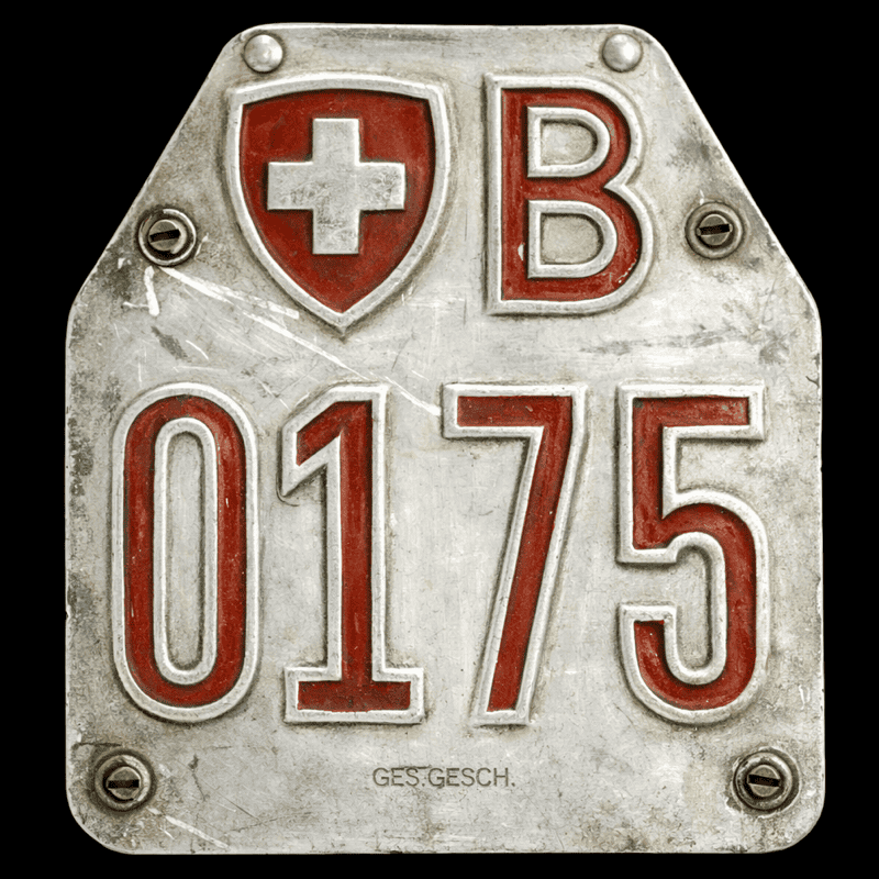 1941 – 1945 = Schweizerkreuz + B + 4 Zahlen (= Rahmennummern 20000 – 29999)