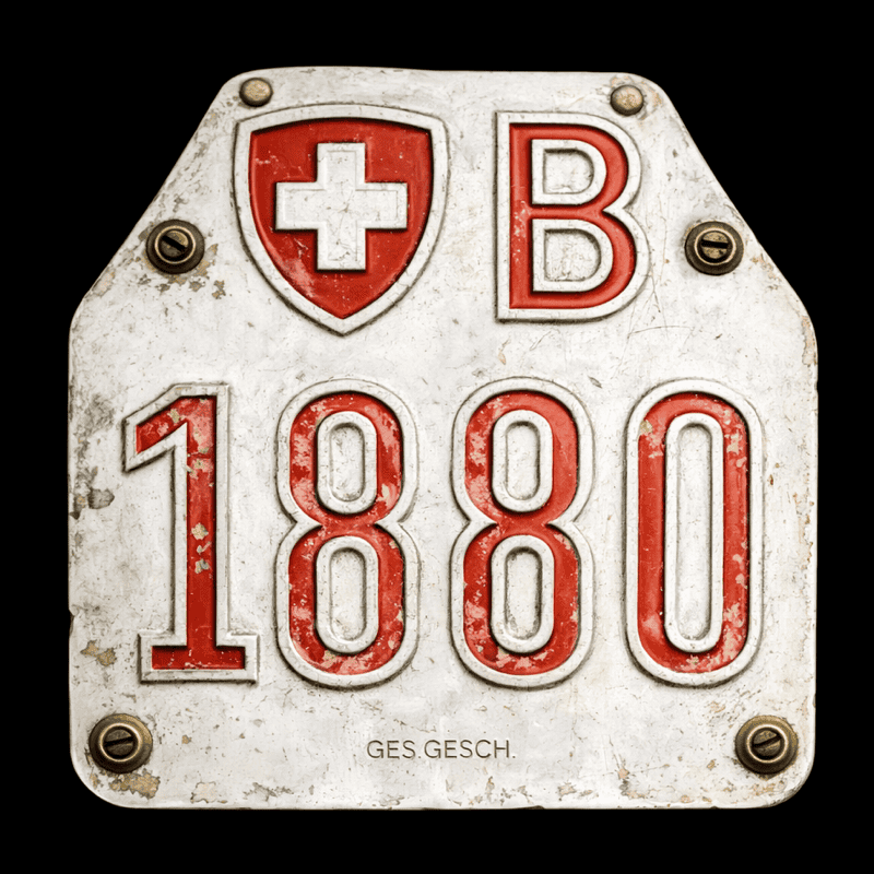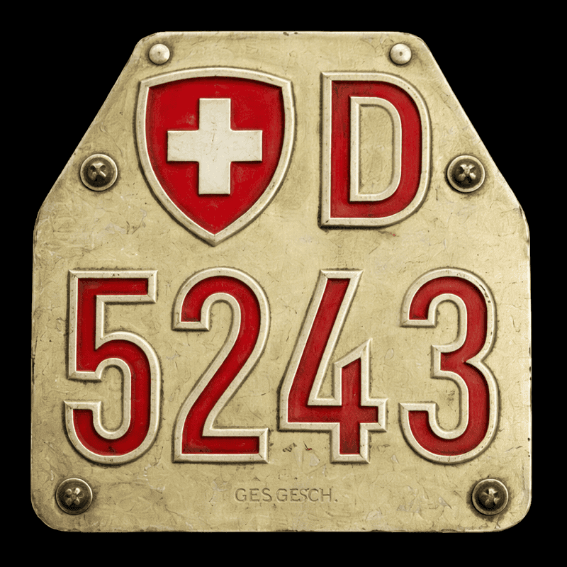 1905 – 1932 = Schweizerkreuz ohne Buchstaben + 4 Zahlen ( = Rahmennummer 1 – 9999) .