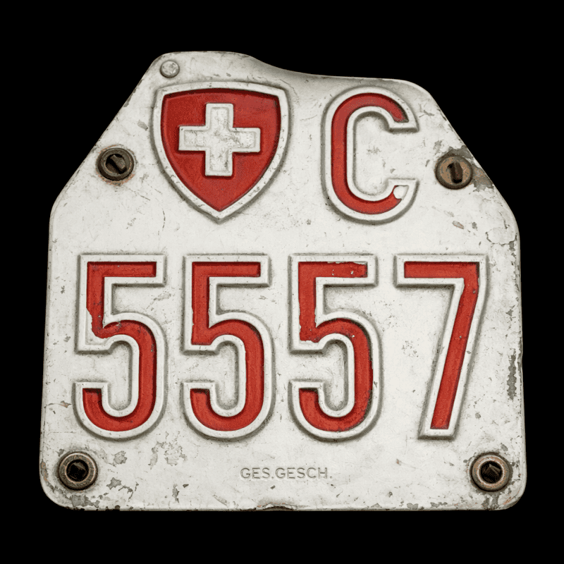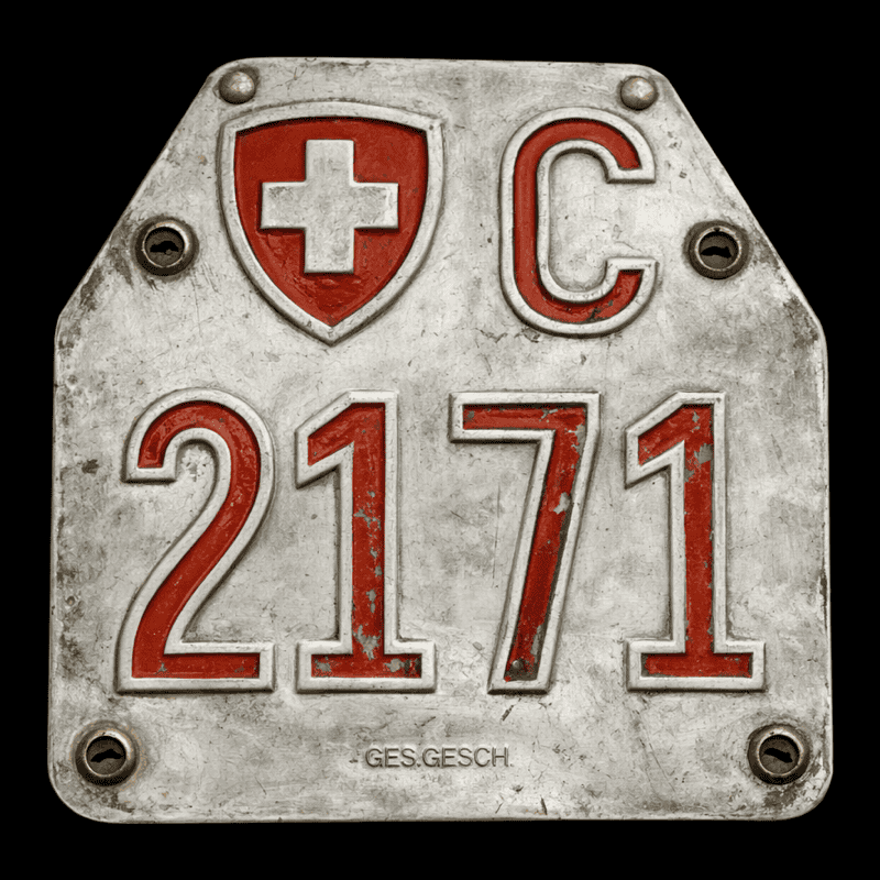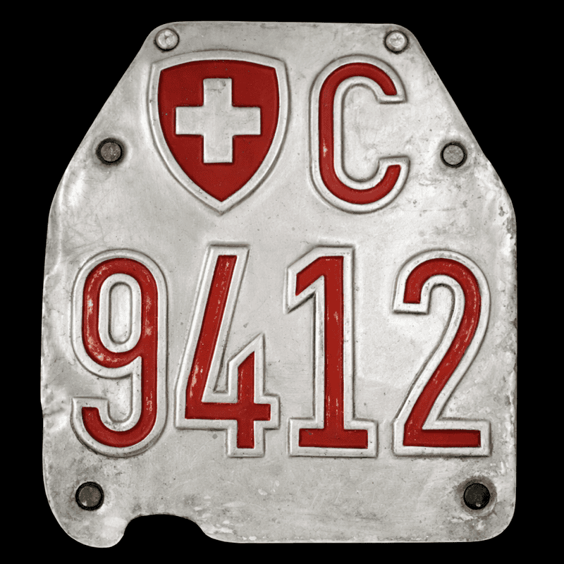 1945 – 1951 = Schweizerkreuz + C + 4 Zahlen (= Rahmennummern 30000 – 39999)