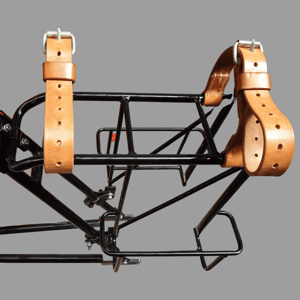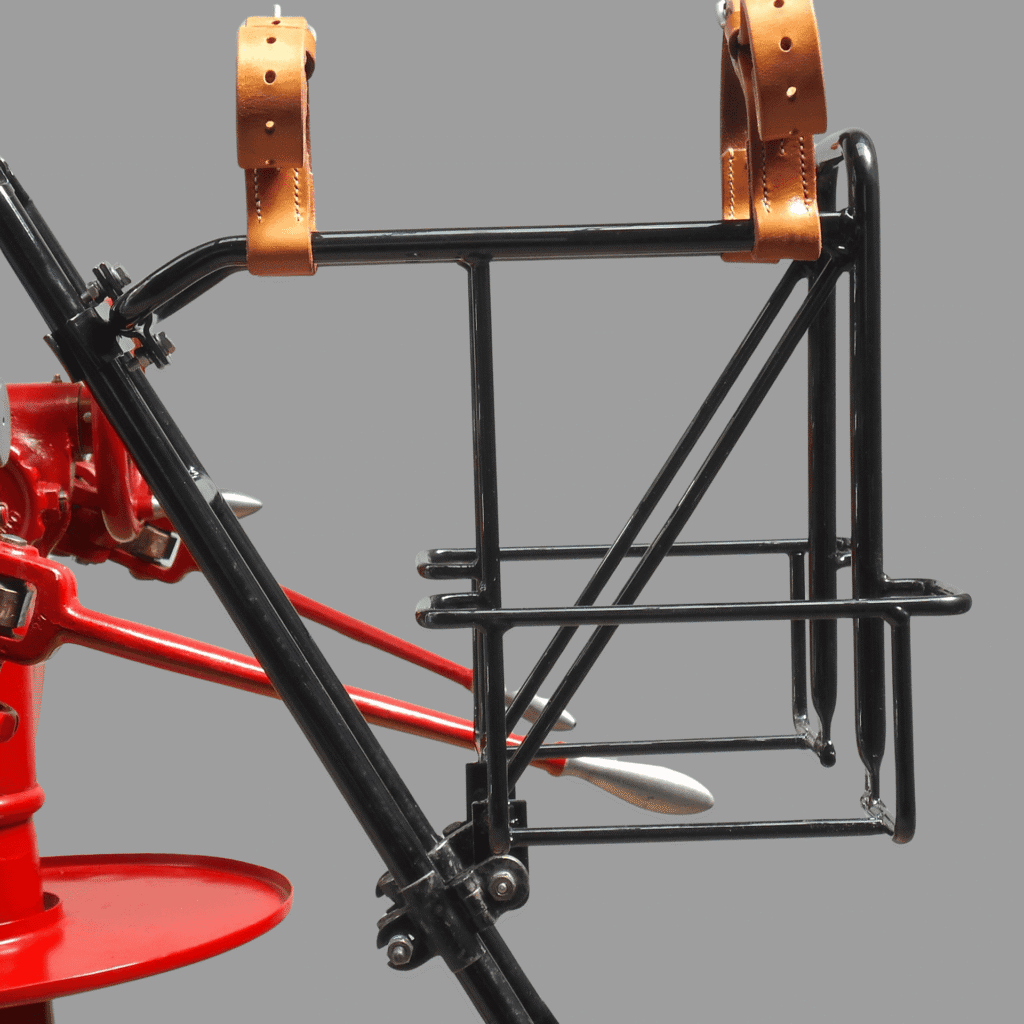 Dieser Mechaniker-Träger ist keine Requisite und kein „Vintage-Look“-Produkt, sondern eine konsequente, originalgetreue Neuanfertigung nach den historischen KTA-Plänen des Fahrradmechaniker-Trägers für das Ordonnanzrad.